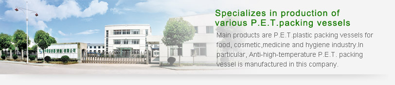 Two million US dollars has been invested to this company. The whole area is 10,000 square meters, including 5,000 square meters for production. The whole set of the advanced P.E.T. plastic vessel production equipment was imported from Taiwan, such as the automatic injection machines bottle blowing machines,label sticking machines, silk-screen machines, light-fixing machies and UV printing machines. Business starts with the mould design till label sticking process. The main products are P.E.T. plastic packing vessels for food, cosmetic,medicine and hygiene industry. In particular,Anti-high-temperature P.E.T. packing vessel is manufactured in this company.